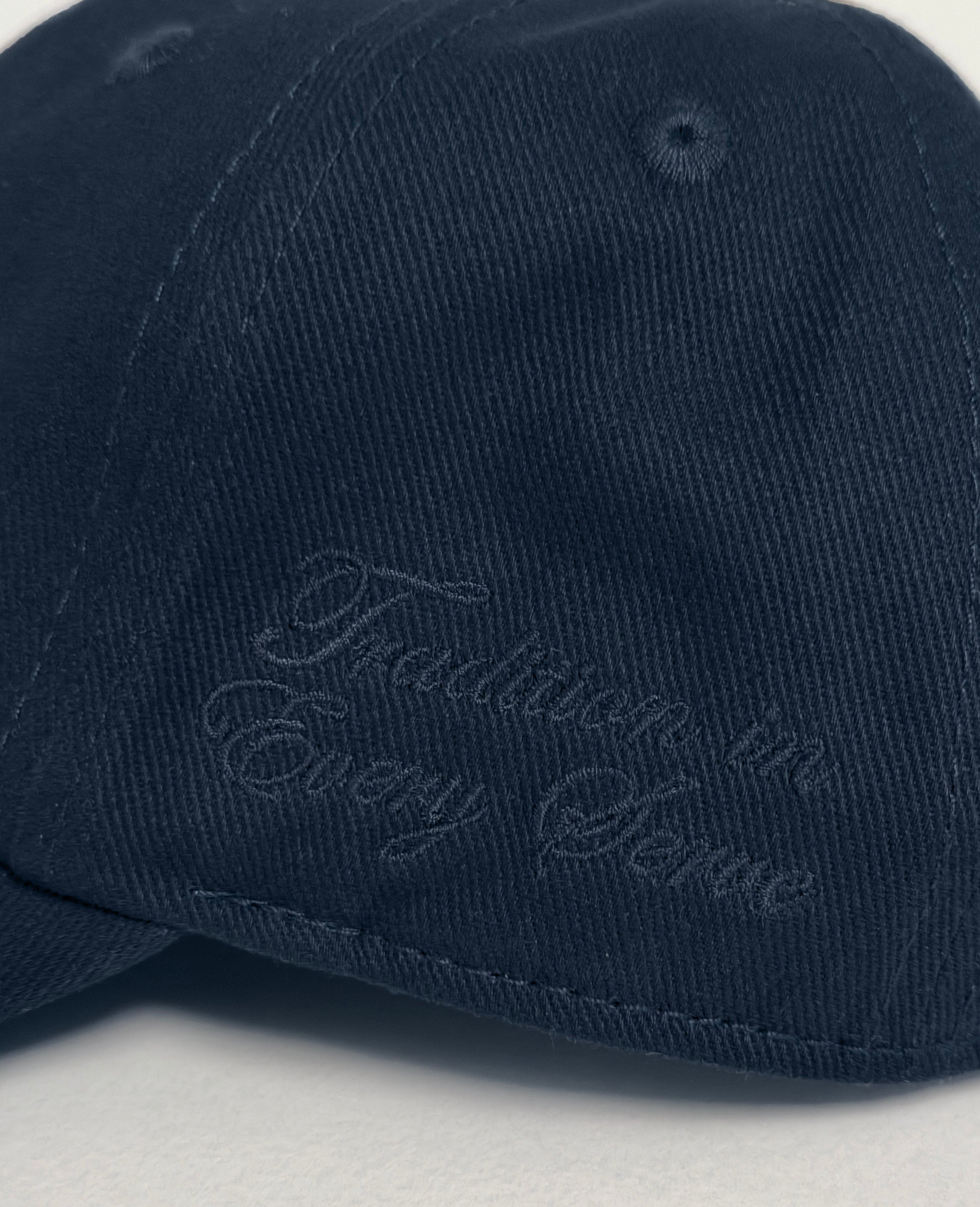 6-panel unstructured brushed cotton twill hat, with embroidered patch details.